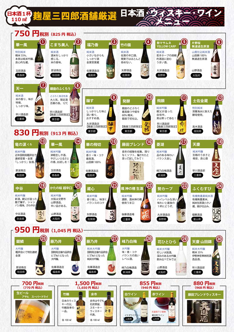麹屋三四郎酒舗本店が自信を持って提供する、酒に夢中になるための会員制倶楽部に参加しませんか。日本酒、焼酎、ワイン!お酒好きが集まれ~